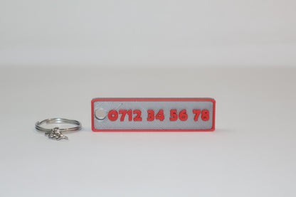 Creează un breloc unic, adaptat exact nevoilor tale. Acest breloc personalizat este disponibil în mai multe variante și poate fi realizat cu numele tău, numărul de telefon sau chiar cu numele firmei / companiei + număr de contact, fiind ideal atât pentru uz personal, cât și pentru promovare sau cadouri personalizate.
